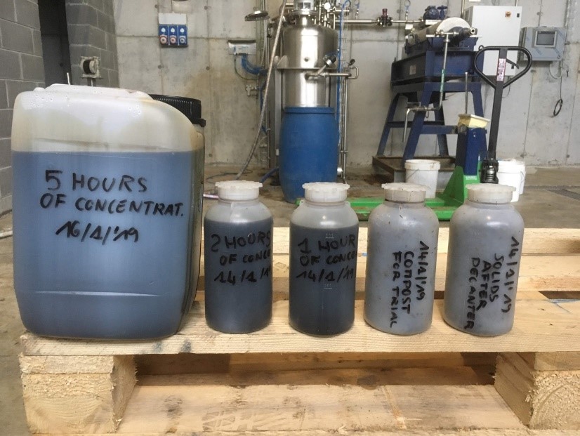 The first trial of the process to produce bio-fertiliser from tomato processing residues has been completed, generating 65 litres of hydrocompost (liquid concentrated bio-fertiliser) from 40 kg of conventional solid compost and 200 litres of water. The trial involved the following steps: